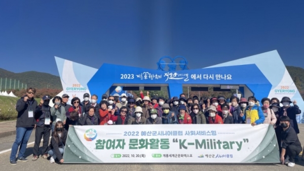 [Ytv영상스토리] 예산군 노인 일자리 수행기관인 예산군시니어클럽은 지난 20일 노인일자리 4개 사업단 참여자를 대상으로 계룡세계군문화엑스포를 견학하는 문화 활동을 실시했다.