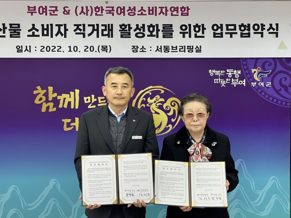 이날 협약식에는 소명수 부여군 부군수와 김천주 한국여성소비자연합 이사장, 이인용 공동대표, 윤금순 충남지회장, 부여군지역농협조합공동사업법인 김동수 대표 등 관계자 12명이 참석했다.
