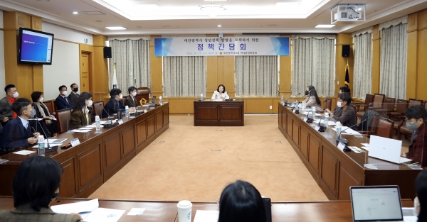 이날 간담회는 ‘대전광역시 청년정책 현황’을 주제로 발제를 맡은 대전청년내일센터 우수정 센터장은 청년 1인 가구가 증가하고 있지만 주거 환경이 취약하고 낮은 고용률과 높은 실업률로 청년인구가 해마다 감소하고 있는 대전시 정책환경 변화에 맞추어 다양한 영역에서 활동하고 있는 청년에 대한 이해, 특히 정책 사각지대의 청년에 대한 이해를 바탕으로 한 당사자 중심을 정책으로 전환하고 장기적인 안목으로 청년정책을 다면화할 필요가 있다고 강조했다.