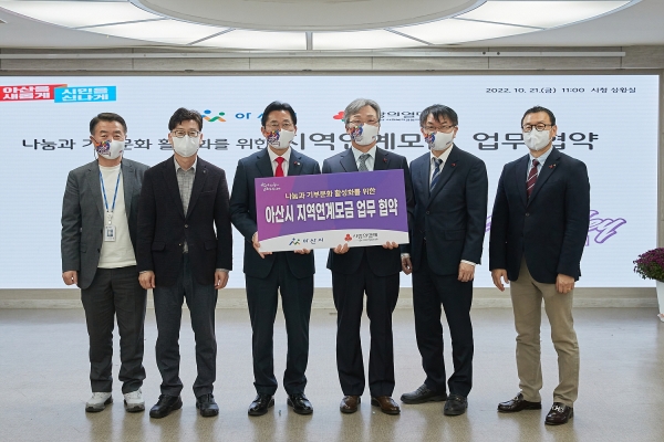 이번 업무협약 체결에 따라 아산시는 모금사업 홍보, 지원 대상자 발굴 및 지원사업 추천 등 사업의 활성화와 원활한 진행을 위한 행정 지원에 적극 협조하게 된다.