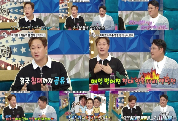 한 침대를 공유한 두 사람은 안쪽 자리를 두고 치열한 쟁탈전을 벌였다고 전해 웃음바다로 만들었다.