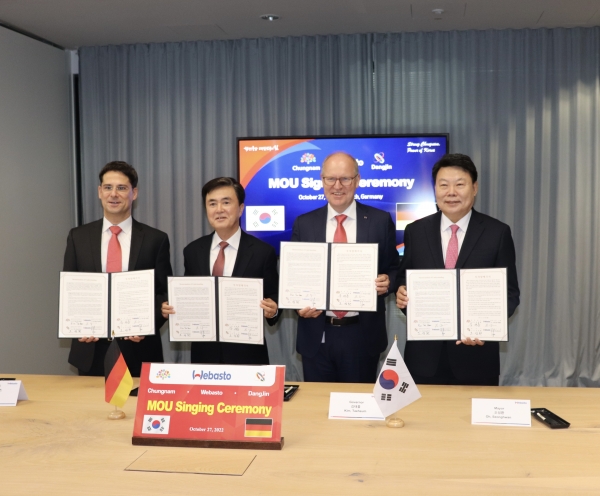 [Ytv영상스토리] 당진시가 27일 독일 스톡도르프 베바스토 본사에서 글로벌기업 베바스토사와 650억원 규모의 투자협약을 체결했다고 밝혔다.