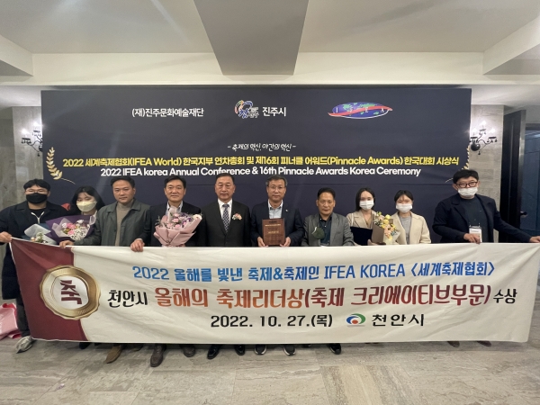 박상돈 천안시장은 2021년 한류문화발전 부문에 이어 2022년 축제 크리에이티브 부문 ‘올해의 축제리더상’을 연속 수상했다.