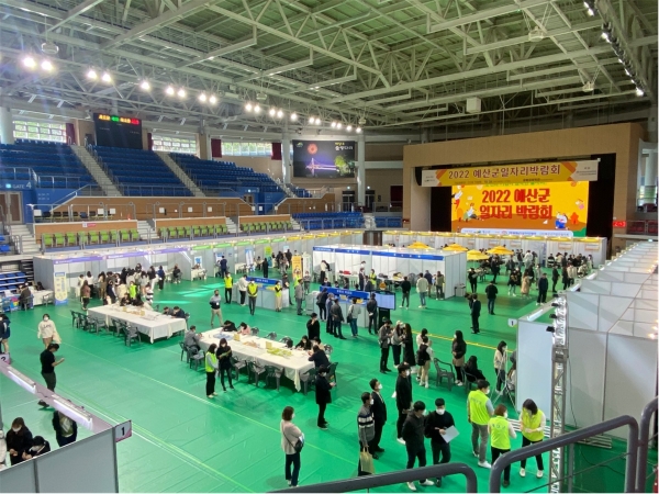[Ytv영상스토리] 예산군은 지난 27일 윤봉길체육관에서 열린 ‘2022 예산군 일자리 박람회’가 22개의 기업과 500여명의 구직자가 참여한 가운데 성황리에 종료됐다고 밝혔다.
