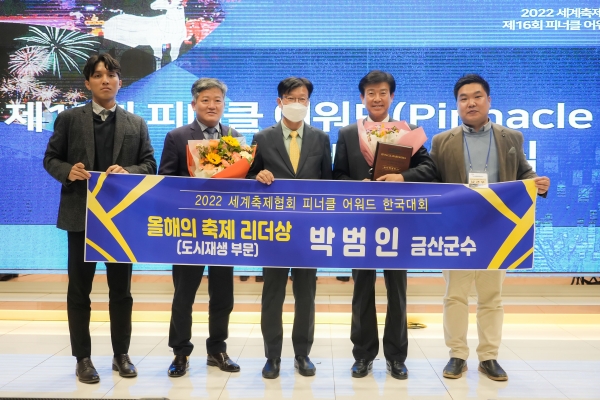 [Ytv영상스토리] 박범인 금산군수는 지난 27일 진주시 동방호텔에서 열린 제16회 피너클어워드 한국대회에서 올해의 축제 리더상을 받았다.