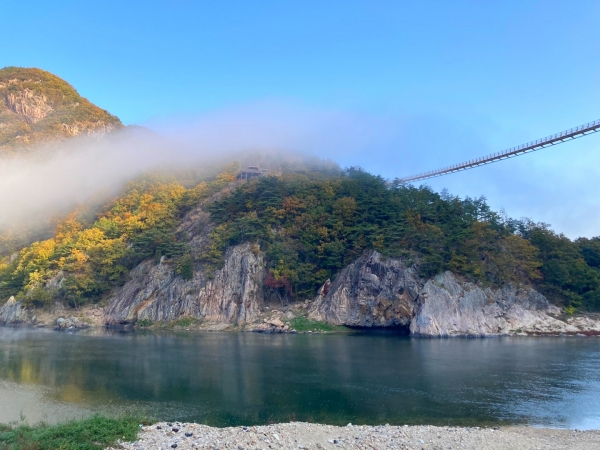 특히 강가 절벽에 푸른 옥이 병풍처럼 펼쳐있어 취병협이라 불리는 아름다운 풍경과 무주탑 설계로 흔들리는 폭이 크기 때문에 얻어지는 스릴감이 다른 출렁다리와의 차별점으로 꼽히고 있다.