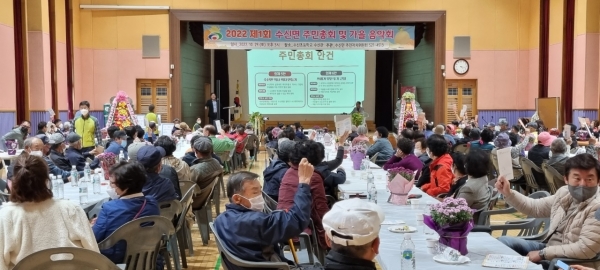 안인기 주민자치위원장은 “많은 주민들의 적극적인 참여로 성공적인 주민총회가 진행될 수 있었다”며 “앞으로 주민이 행복한 수신면을 만들기 위해 주민들과 적극 소통하며 노력하겠다”고 말했다.