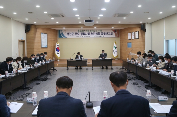 이날 보고회에서는 김기웅 서천군수 주재로 부군수 이하 부서장 25명이 참석해 부서별 공모사업 및 균형발전사업 추진상황을 공유하고 문제점, 향후 계획 등에 대해 토론했다.