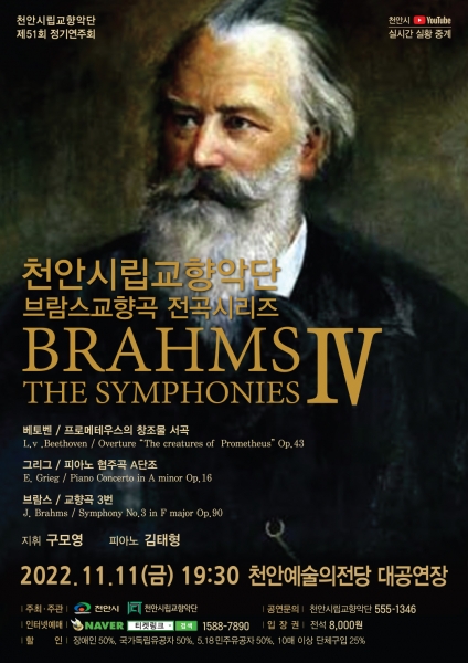 브람스 교향곡 전곡 시리즈 4번째 이야기로 꾸며지는 이번 제51회 정기연주회는 구모영 예술감독의 지휘로 교향곡 3번을 무대에 올린다.