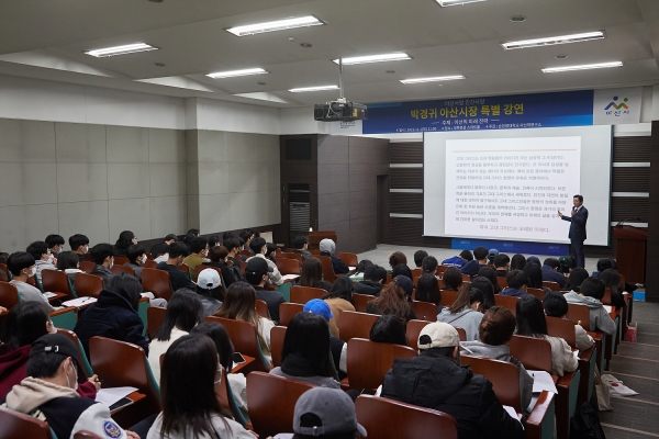 [Ytv영상스토리] 박경귀 아산시장이 11월 1일 순천향대학교 아산학 교양강좌 수강생 120여명을 대상으로 특강을 진행했다.