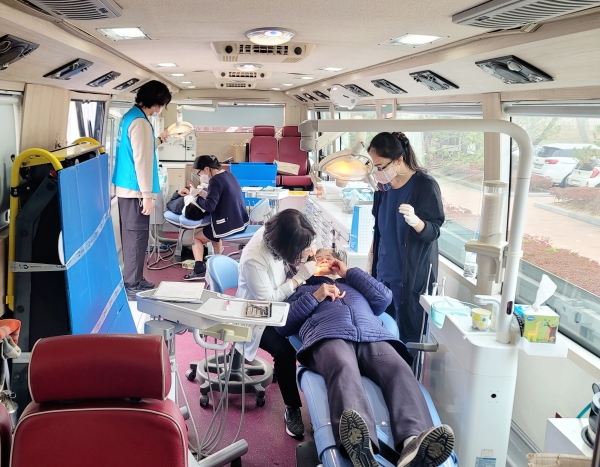 2016년부터는 전문적인 치과진료가 가능한 ‘유디덴탈버스’를 활용해 찾아가는 나눔진료를 실시하고 있다.