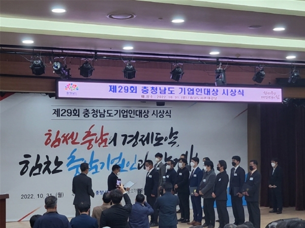 이날 시상을 맡은 전형식 충청남도 정무부지사는 “중소기업이 성장해야 일자리가 생기고 인구가 늘어나고 지방세수도 더 많이 확보된다”며 “우리 중소기업이 성장할 수 있도록 각종 금융 지원과 경영 지원에 최선을 다하겠다”고 말했다.
