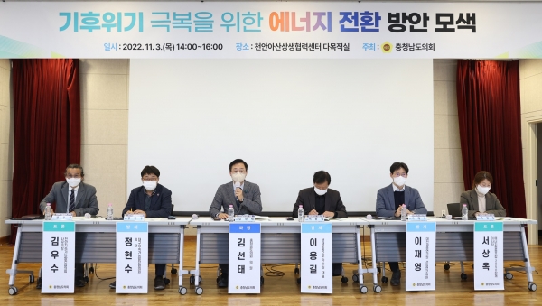 김선태 의원의 신청으로 3일 천안아산상생협력센터에서열린 이번 ‘기후위기 극복을 위한 에너지 전환 방안 모색 토론회’에는 도민과 관계 전문가 등 50여명이 참석했다.