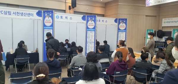 서천군은 지난달 서천 문예의전당에서 10여 개의 장항국가산업단지 입주 기업이 참여한 가운데 취업박람회를 개최했다.