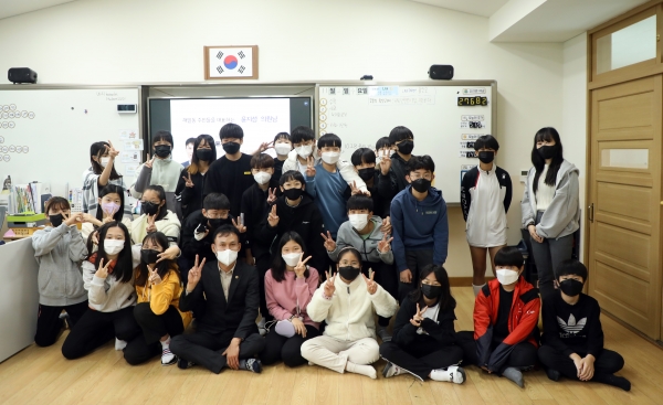 특히 윤지성 의원은 학생들의 질문에 “의원은 지역의 여러 과제들을 해결하기 위해 필요한 조례를 만들고 지역의 1년 살림살이인 예산안을 검토하고 확정한다”며 “그 외에도 지역의 다양한 문제를 해결하기 위해 관련 단체·기관과 논의하고 합리적인 해결 방안을 만들기 위해 노력한다”고 답했다.