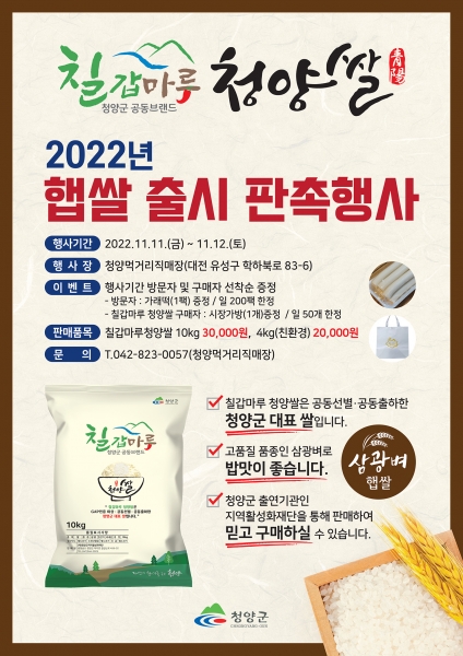 11~12일 ‘칠갑마루 청양쌀’ 햅쌀 출시기념 판촉 행사