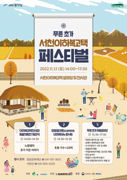 [Ytv영상스토리] 서천군은 오는 12일 서천이하복고택에서 체험형 문화 축제인 ‘푸른초가 서천이하복고택 페스티벌’을 개최한다.