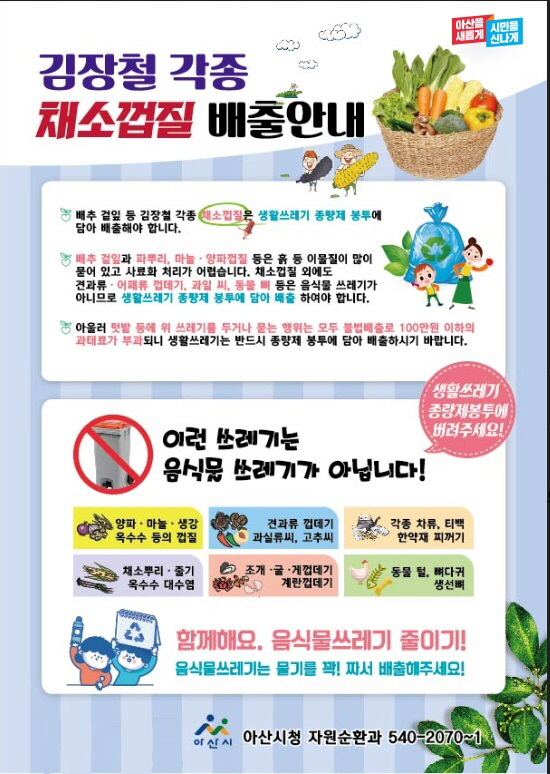아산시, 올바른 김장철 음식물 쓰레기 배출 홍보 나서