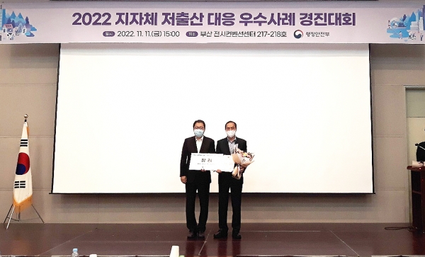 저출산 대응 경진대회는 지자체의 우수사례를 발굴·전파해 정책 관심도를 높이기 위한 것으로 전국 38개 지자체가 참여했으며 행정안전부는 8~9월 심사위원단 및 국민들이 참여한 1차 심사를 거쳐 이날 2차 발표 심사를 통해 최종 우수 지자체를 가렸다.