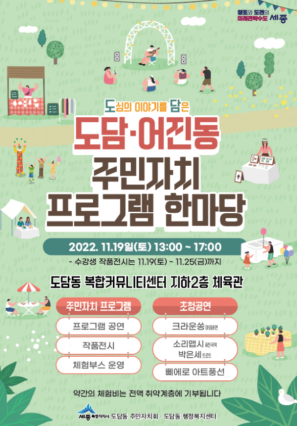 [Ytv영상스토리] 세종특별자치시 도담동과 도담동주민자치회가 오는 19일 도담동 복합커뮤니티센터 체육관에서 ‘도담·어진 주민자치 프로그램 한마당’행사를 개최한다.