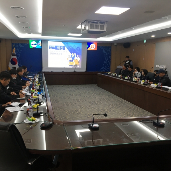 예산군 방재센터는 깨끗하고 안전한 행복 예산 조성을 위해 군청사 시설과 청소를 관리하는 용역업체 20명으로 구성되어 운영하고 있으며 군청 및 보건소를 비롯한 군청사 내외부 시설을 유지·관리해 주민들에게 청결한 군청 이미지를 제공하고 있다 이번 실시한 안전·보건 교육은 재무과 청사관리팀에서 주관으로 주요 재해사례 및 예방대책과 기본적인 안전·보건과 관련한 사항에 대한 교육을 진행하고 방재센터 직원 간 소통 및 교류의 장을 만들어 호응을 얻었다.