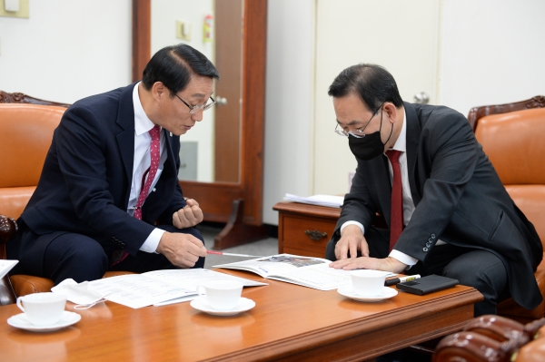 특히 주호영 원내대표와 성일종 정책위의장에게 내포 뉴그린 국가산업단지 조성 충남혁신도시 개발예정지구 先 지정 등 서해안권 거점도시로 성장하는데 필요한 핵심 현안의 당 차원 지원을 강력히 요청했다.