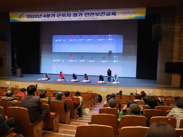 [Ytv영상스토리] 금산군은 지난 16일 금산다락원 대공연장에서 소속 현업근로자를 대상으로 산업재해 예방 및 대응역량 강화를 위한 4분기 안전보건교육을 시행했다.