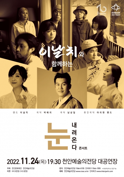 [Ytv영상스토리] 천안문화재단은 오는 24일 천안예술의전당 대공연장에서 얼터너티브 팝 밴드 ‘이날치’, 국악인 박애리·남상일 아리현밴드가 함께하는 ‘눈 내려온다’ 콘서트를 개최한다.