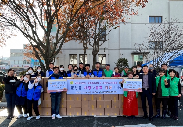 임익렬 문성동장은 “겨울이 다가오면 제일 먼저 김장 걱정이 앞서왔는데 바쁘신 중에도 김장 나눔에 참여해주신 모든 분에게 감사드린다”며 “앞으로도 찾아가는 적극적 복지서비스가 더욱 활발히 이루어질 수 있도록 노력하겠다”고 밝혔다.