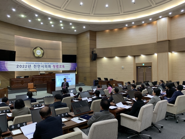 21일 천안시의회 본회의장에서 열린 이날 교육은 전체의원 및 의회사무국 직원들을 대상으로 진행됐다.