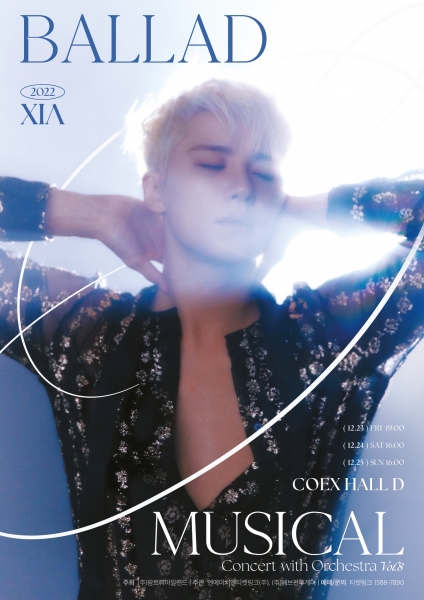 오늘 오후 8시 온라인 예매사이트 티켓링크를 통해 김준수 연말 콘서트 ‘2022 XIA Ballad&Musical Concert with Orchestra Vol.8’의 공연 일반 예매가 시작된다.