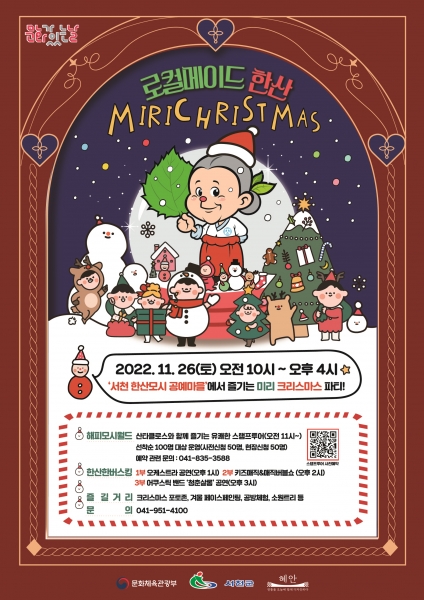 또한, 행사 당일 공예마을 분수 광장에서 서천 필하모닉 오케스트라의 크리스마스 캐롤 연주를 시작으로 키즈매직&버블쇼 및 어쿠스틱 벤드의 무대도 함께 준비됐다.