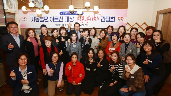 간담회에는 이완섭 서산시장을 비롯한 관계 공무원이 참석해 봉사자들의 애로사항을 청취하고 서비스 개선방안을 논의했으며 참석자들은 서산시 보건소의 방문건강관리사업과 자원봉사 활성화로 서비스 수혜자를 확대해 나가기로 했다.