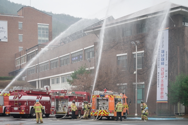 또 안전 통신시스템을 활용, 도립대 현장에 설치된 재난 현장 통합지원본부와 재난상황실 간 교신을 통해 불시 임무에 대한 실무자들의 상황판단 능력을 점검했다.