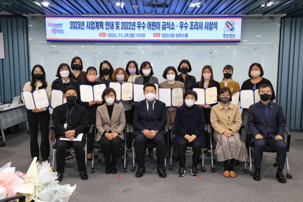 이날 수상한 우수 어린이 급식소는 최우수상 리가어린이집, 버그네 어린이집, 신성나비랑어린이집 우수상 금천어린이집, 다온어린이집, 은빛어린이집, 풀잎어린이집, 한라비발디어린이집, 햇살가득어린이집, 힐스테이트어린이집이 수상했고 우수 조리사 버그네어린이집 및 신성나비랑어린이집, 힐스테이트 어린이집 조리사가 수상의 영광을 안았다.