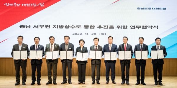 정부 부처와 충남도, 7개 시·군은 지난 28일 오후 3시 충남도청에서 지방상수도 통합을 통한 규모화로 재정 건전성을 높이고 안정적인 물 공급으로 공평한 물 복지를 실현하자고 의견을 모았다.