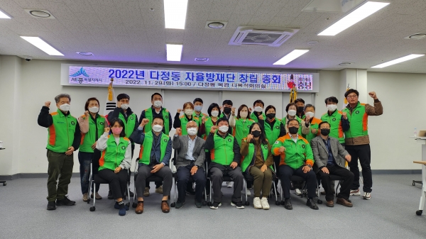 이날 창립총회에서 양길수 세종시 자율방재단 연합회장을 비롯해 각 읍면동 자율방재단 대표, 다정동 자율방재단원 등 30여명이 참석했다.