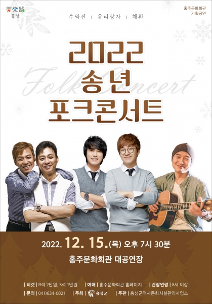 [Ytv영상스토리] 홍성군 홍주문화회관은 송년 시즌을 맞아 진정성 있는 포크음악으로 소통하는 “2022 송년 포크콘서트”를 12월 15일 오후 7시 30분에 개최한다.