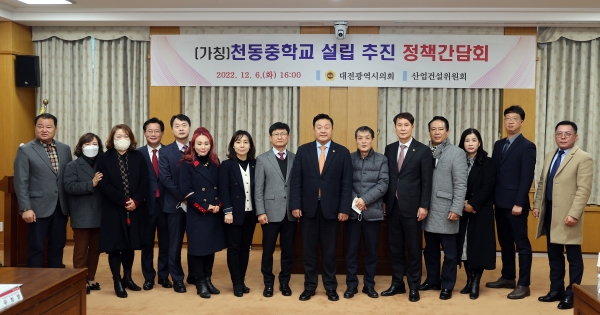 이번 정책간담회는 송인석 의원이 지난 22일 대전광역시의회 시정질문에서 ‘천동중학교 신설 문제’와 관련한 대책 마련을 촉구한 이후 개최됐다.