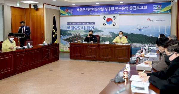 이날 중간 보고회에서는 태안 피트와 이를 이용한 상품들의 엄격한 품질관리를 위한 조례안, 품질인증을 표시하는 브랜드 로고 외산 제품들과의 비교우위 실험 결과 등이 발표됐으며 지역 산학협력을 통해 개발된 입욕제와 워시오프팩 등 현재 개발 진행 중인 프리미엄 상품들에 대한 보고도 진행됐다.