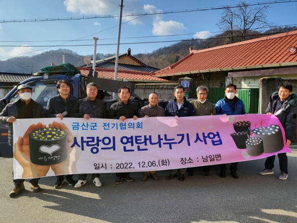 금산군전기협의회는 이날 저소득 취약가구를 위해 남일면 황풍리 등 3곳에 150만원 상당의 연탄을 전달했다.