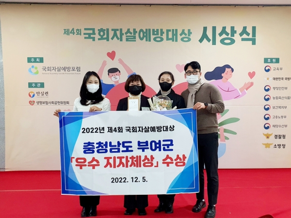 다양한 맞춤형 시책을 마련해 자살 예방에 힘을 쏟아온 부여군의 노력이 평가받은 것으로 풀이된다.