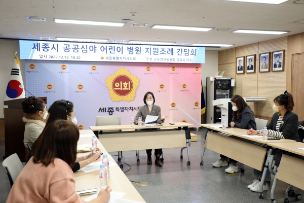 12일 세종시의회 김효숙 의원(나성동, 더불어민주당)에 따르면 세종시 공공 심야 어린이병원 지원 조례 발의를 준비하기 위해 지역 학부모 및 의료기관 관계자 등을 만나 의견을 수렴해왔다.