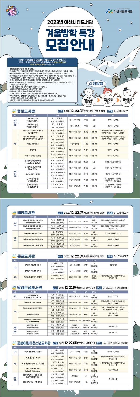 [Ytv영상스토리] 아산시가 오는 22일부터 ‘2023년 아산시립도서관 겨울방학 특강’ 수강생을 모집한다.