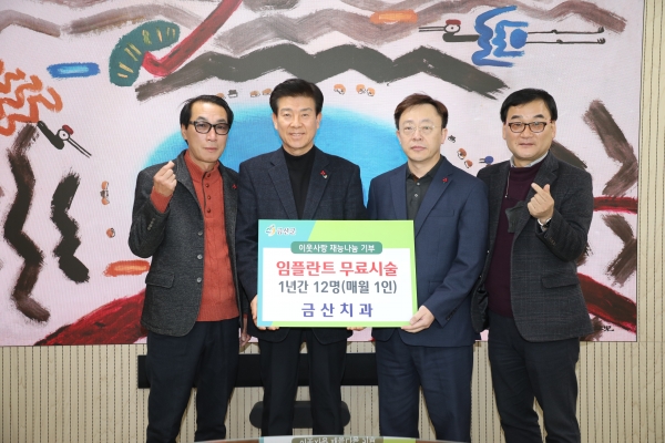 [Ytv영상스토리] 금산치과는 지난 14일 금산군을 찾아 경제적으로 힘든 여건에 놓인 금산군 저소득 군민을 대상으로 각 읍면의 추천을 받아 2023년 매월 1명씩 총 12명에게 임플란트 무료시술 지원을 약속했다.