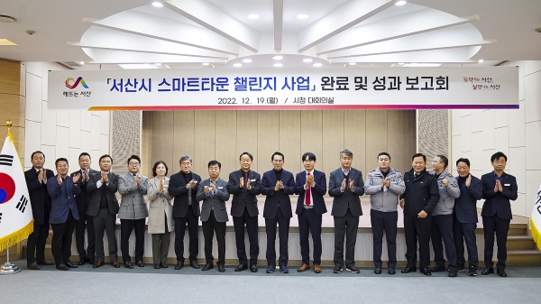 시는 지난 19일 시청 대회의실에서 이완섭 서산시장과 구상 부시장 등 관련 공무원과 유관기관 관계자가 참석한 가운데 스마트타운 챌린지 사업완료 및 성과보고회를 개최했다고 밝혔다.