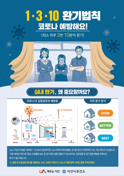 서산시, 겨울철 환기로 코로나19 이제 그만 ‘1·3·10 환기법’ 실천하세요