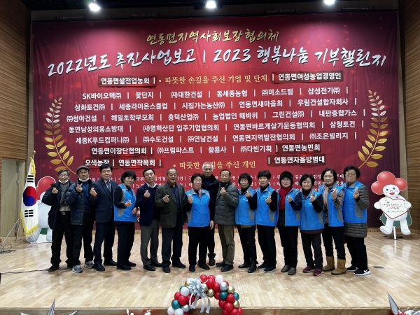 [Ytv영상스토리] 세종특별자치시 연동면지역사회보장협의체가 지난 20일 연동면 복합커뮤니티센터에서 ‘2022년 연동면지역사회보장협의체 추진사업보고’와 ‘2023 희망나눔 기부챌린지 행사’를 개최했다.