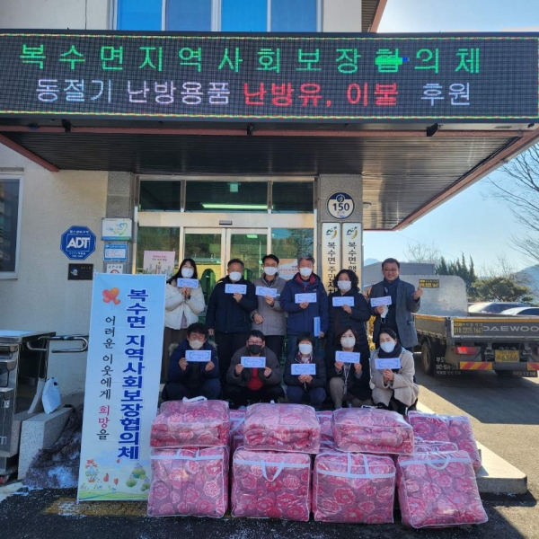 복수면지역사회보장협의체에서는 어려운 이웃을 돕기 위해 440만원 상당의 난방유와 이불을 지원했다.
