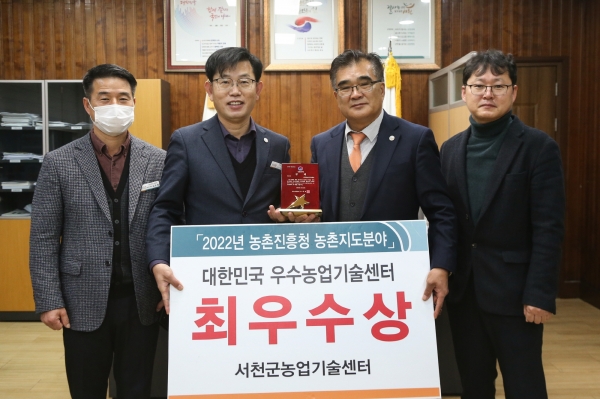 서천군농업기술센터는 기술보급사업 종합만족 스마트농업 확산 청년농업인 육성 전문역량개발 농산물 가공제품 상품화와 홍보, 중앙·지방 협업 등에서 높은 평가를 받아 최우수 기관으로 뽑혔으며 직원 8명이 농촌지도사업 분야별 표창을 수상했다.